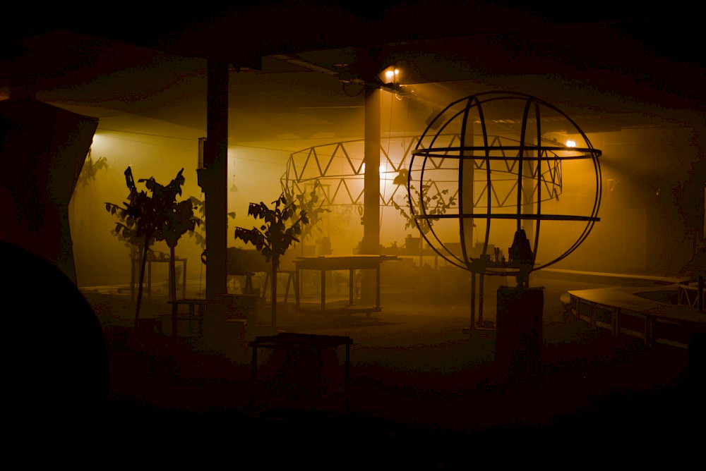 “One day, a large banner suddenly appeared on the facade of the Decoratelier, showing a virtual vision of what the neighbourhood might look like in the future. The atelier and its surroundings had been replaced by a large park. That same day, I met a group of people from Globe Aroma and we decided to dig a hole towards this future park that, right now, is still an old factory. In the enormous void we taught each other to build out loud: a form of construction in which there is no difference between speaking, dreaming and building. Gradually an alternative park took shape, a park where memories and imagination intermingle, a secret garden filled with shadows and a jumble of grey zones. As yet I understand little of it, but it seems to be a place where people can decide for themselves whether or not to be visible or invisible, and this in the heart of the city.” Jozef Wouters.