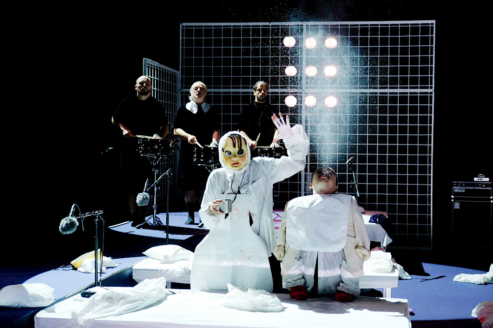 Sur scène, des grilles blanches et des lits défaits. Huit interprètes donnent vie à une étrange fable délirante et libératrice par la performance, la danse et un jeu de percussions. Pour NÔT, qui signifie nuit en créole capverdien, Marlene Monteiro Freitas s’est inspirée des Contes des Mille et Une Nuits : des histoires d’amour, de liberté et de guerre. L'ambiguïté qui imprègne ces récits est le catalyseur créatif de ce spectacle qui révèle, une fois de plus, son style chorégraphique singulier : une présence performative intense, une esthétique puissante, des éléments grotesques, carnavalesques, des mouvements fractionnés et un langage absurde.
