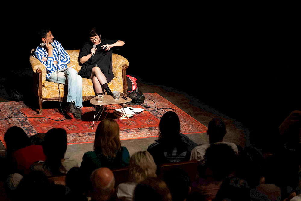 La littérature et la poésie sont des domaines de recherche centraux dans le travail de Carolina Bianchi. Dans sa dernière création, The Brotherhood (Kunstenfestivaldesarts 2025), elle se présentait d'abord comme autrice, puis metteuse en scène, et occasionnellement performeuse. Ses œuvres, portées par une recherche approfondie de la forme théâtrale, nouent un dialogue permanent avec des écrivain·es : du voyage de Dante entre l'Enfer et le Paradis à Sarah Kane, en passant par Emily Dickinson ou T.S. Eliot – pour qui le théâtre était « le médium idéal de la poésie ». La conversation avec d'autres artistes est devenue un élément central de sa pratique, révélant les processus continus de contamination qui façonnent chaque voix. Pour cette édition, Bianchi présente une série de trois rencontres nocturnes : Romeo Castellucci sur Dante, Alice Diop et Édouard Louis sur l'écriture. Dans un format de late-night talk intimiste, elle les convie à un dialogue fluide : plus qu’une interview classique performée ou un exercice de représentation figée, la vulnérabilité et la douceur d’un moment partagé dans la nuit sont ici privilégiées. Une hôte, un·e invité·e, deux fauteuils et un public qui fait cercle ; une série de conversations éphémères en une seule saison et trois épisodes.