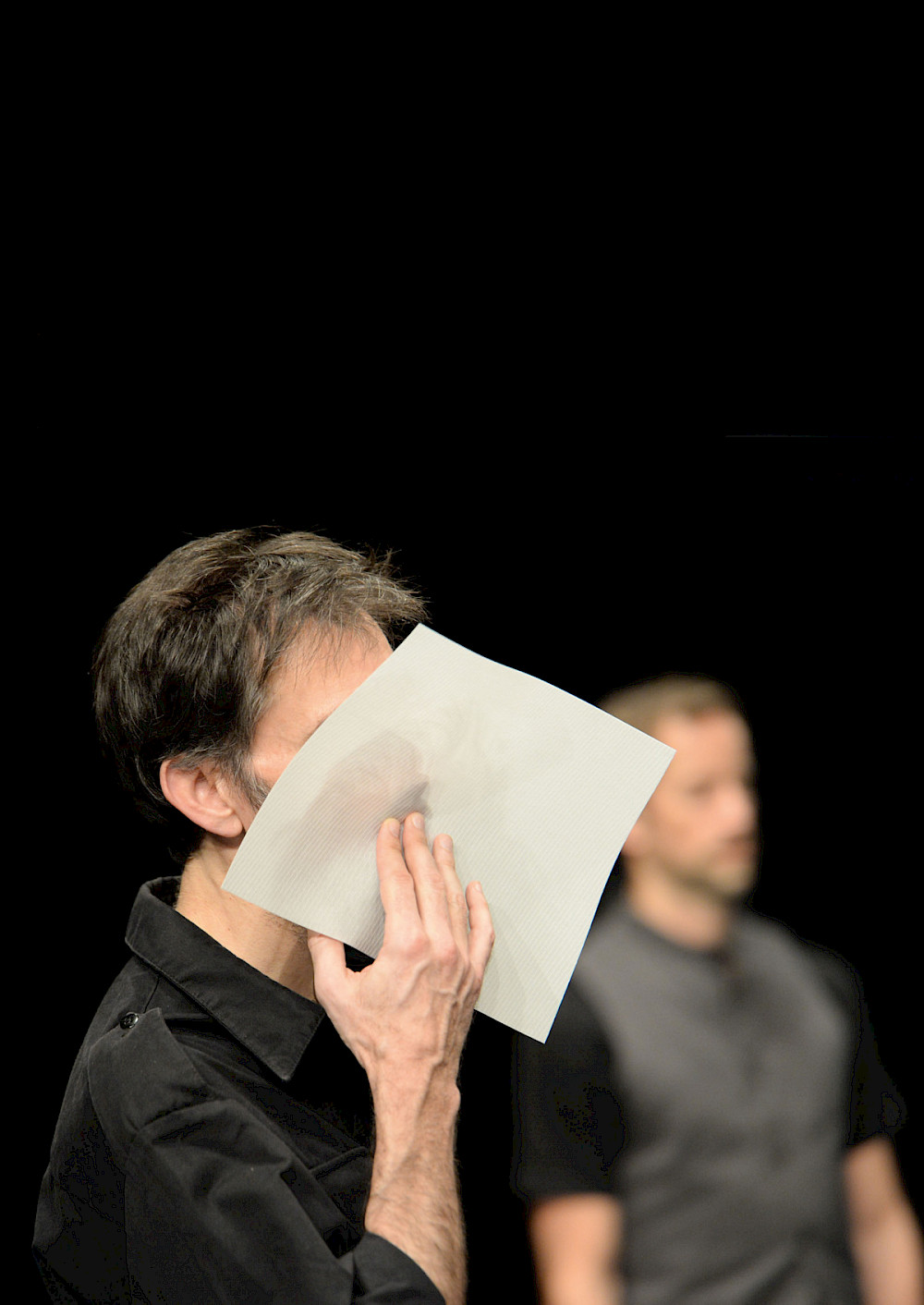We eten liggend we slapen staande we verteren de informatie we dansen met volle mond we zingen en kauwen tegelijk we kauwen en stappen tegelijk we dansen en denken en zingen en slikken tegelijk we laten de beweging van de mond vertrekken van de lippen van de vingers die we aflikken van de voeten die het eten op de grond aanraken gehemelte-dans tanden-dans tong-dans we nemen de tafel weg de stoelen het tafellaken het ritueel van de maaltijd we verbeelden een soort maaltijd in beweging, we eten alles, we eten van alles, de hele tijd door de lange voedselketen gaat van arm tot arm, het eten verdwijnt in de lichamen het decor wordt onzichtbaar, de choreografie van mensen is een choreografie van voedingsstoffen geworden die de ruimte en het lichaam doorkruisen de essentie ligt in de keel verscholen we houden een hongerstaking ons lichaam wordt een voorwerp van staking we slikken de boodschap door we verslinden de werkelijkheid we verteren de conflicten een kind eet en danst tegelijk”