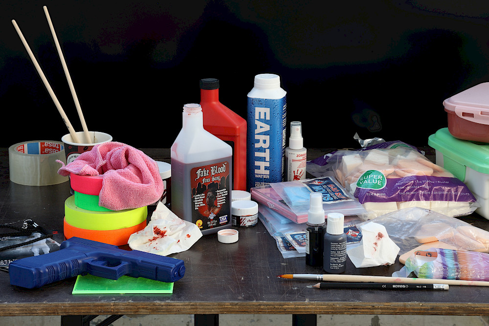 Kunstenaar Emmanuel Van der Auwera deed de afgelopen jaren onderzoek naar shooter drills (schietpartijtrainingen) in de Verenigde Staten. Ordediensten bouwen volledige decors na en bedrijven verkopen trainingsprogramma’s die mensen leren hoe ze rampen kunnen overleven. Alles flirt met de codes van het theater: de ‘waarheidsgetrouwe’ decors en scenario’s, de make-up van figuranten die gewonden spelen.